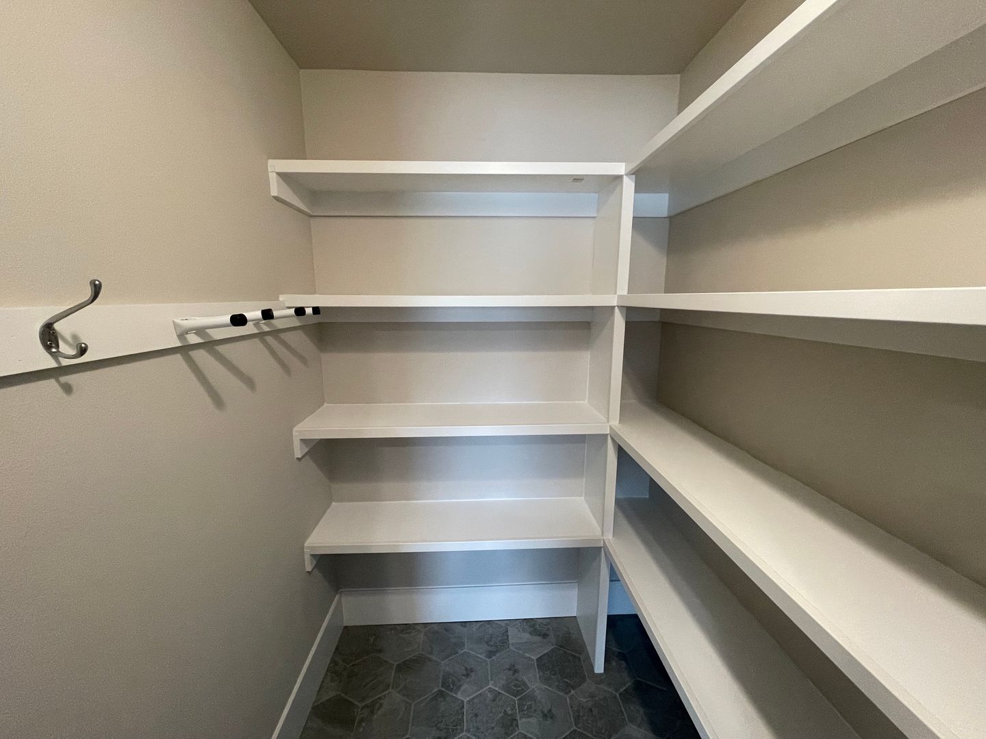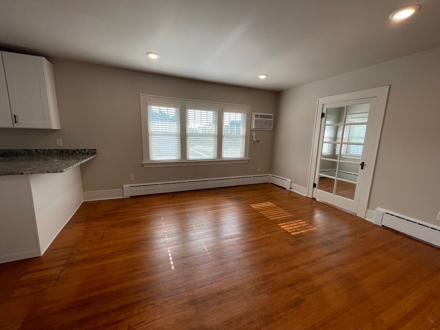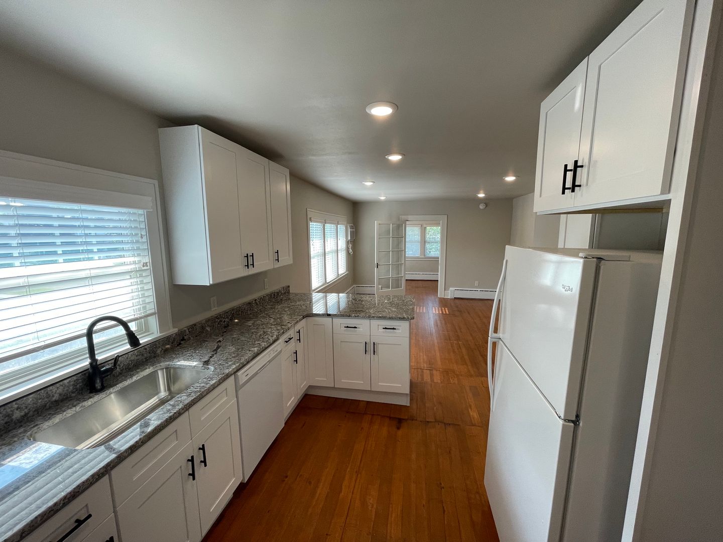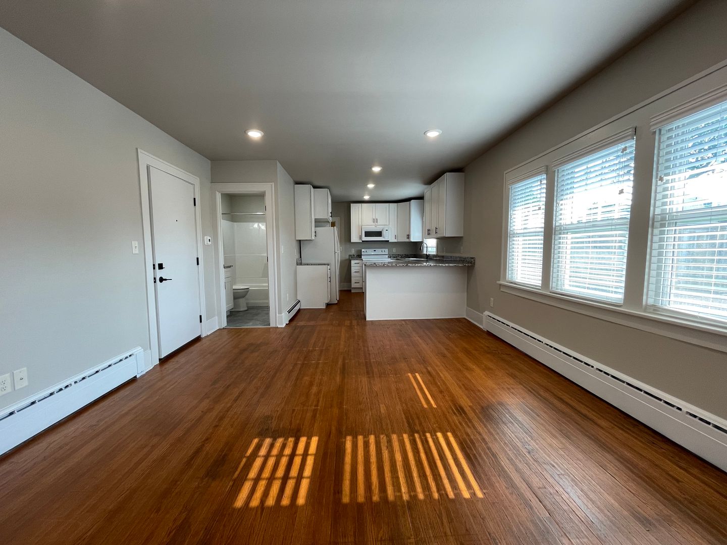 Kitchen is large and the main attraction with gorgeous granite countertops and tons of cabinets and brand new appliances. Original hardwood floors were professionally refinished and are throughout the apartment. Unique hexagon style tile in bathrooms.