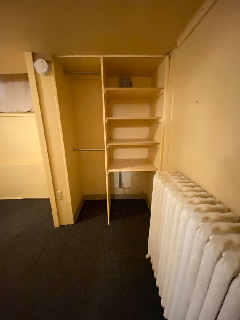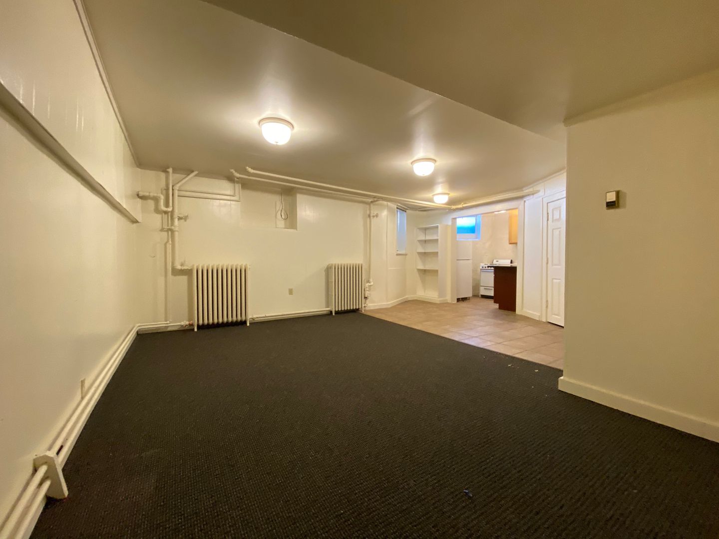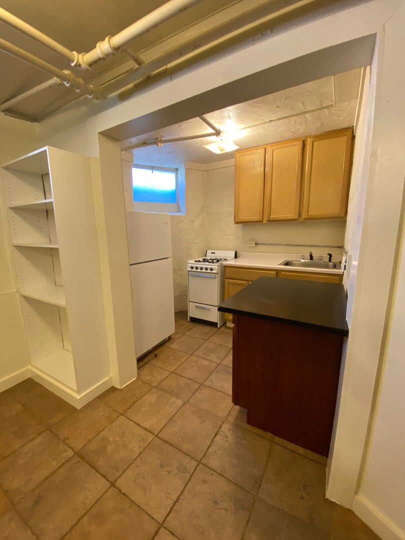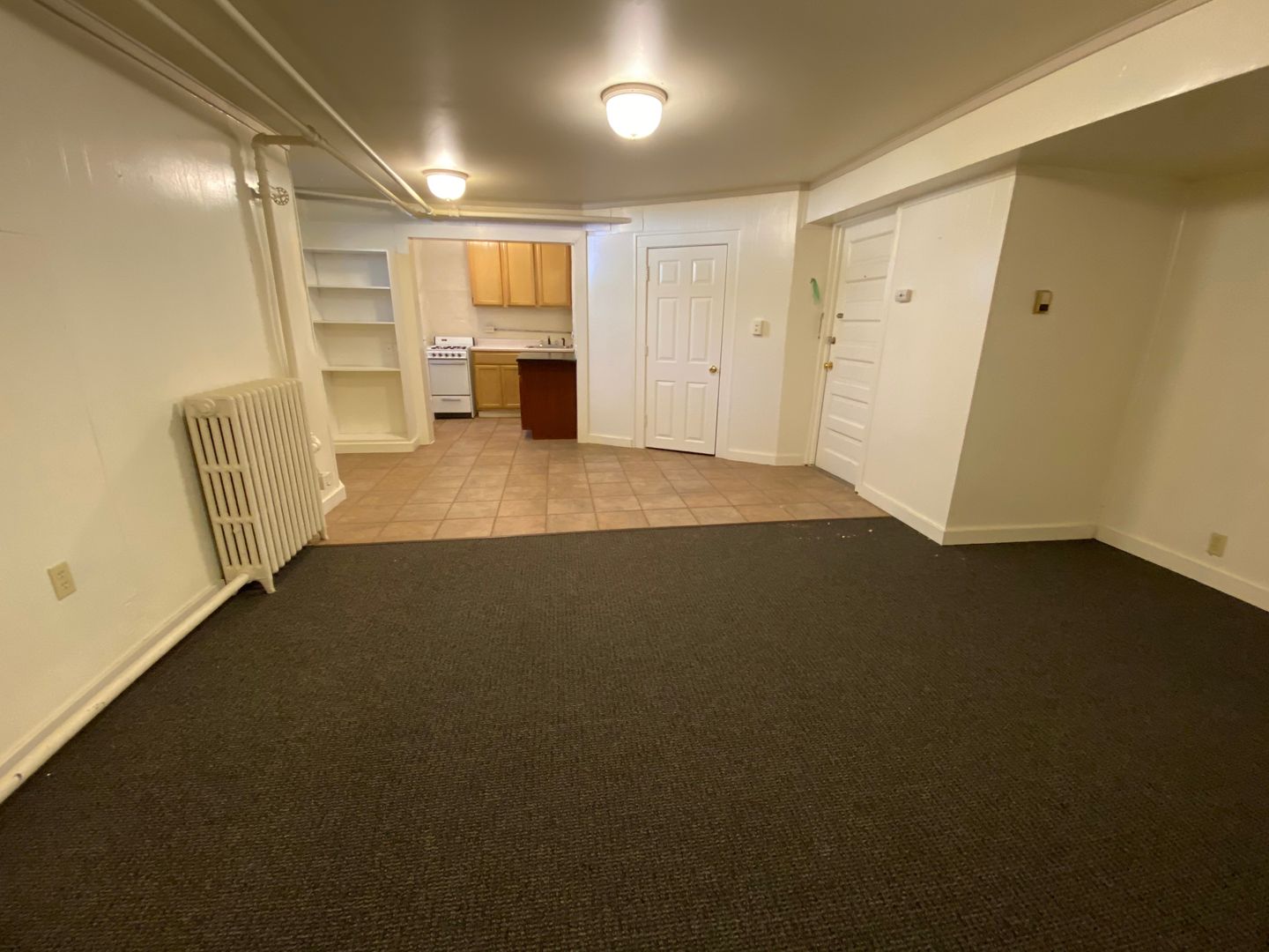 The apartment features an open concept living room/dining/kitchen layout. The kitchen is equipped with fridge and gas stove and tile flooring. The bathroom also features tile flooring and a nice stall shower. The bedroom has 2 closets for extra storage space and nice carpet.