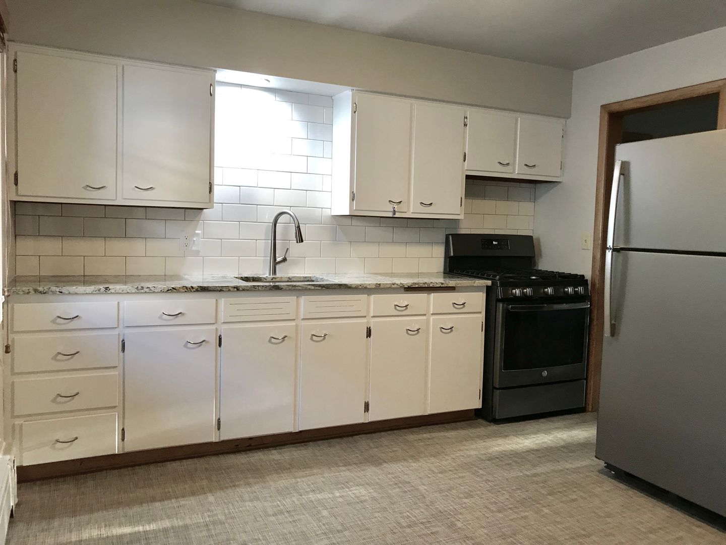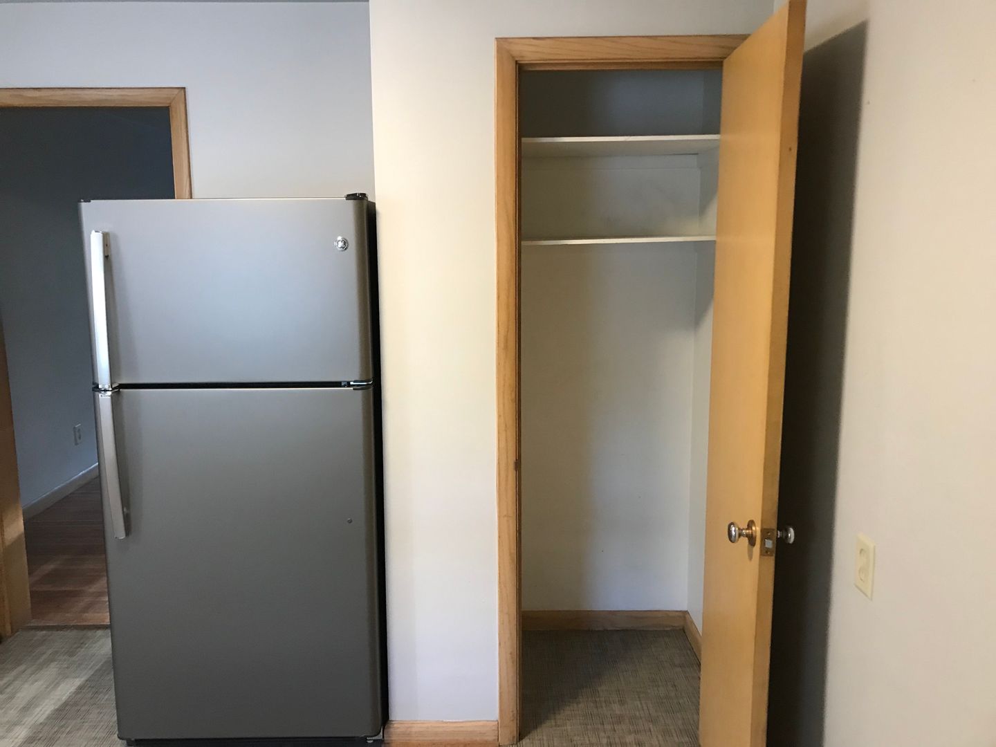 Large living room and large kitchen with plenty of cupboards and space. Has a pantry closet in the kitchen plus a large storage closet in the living room.