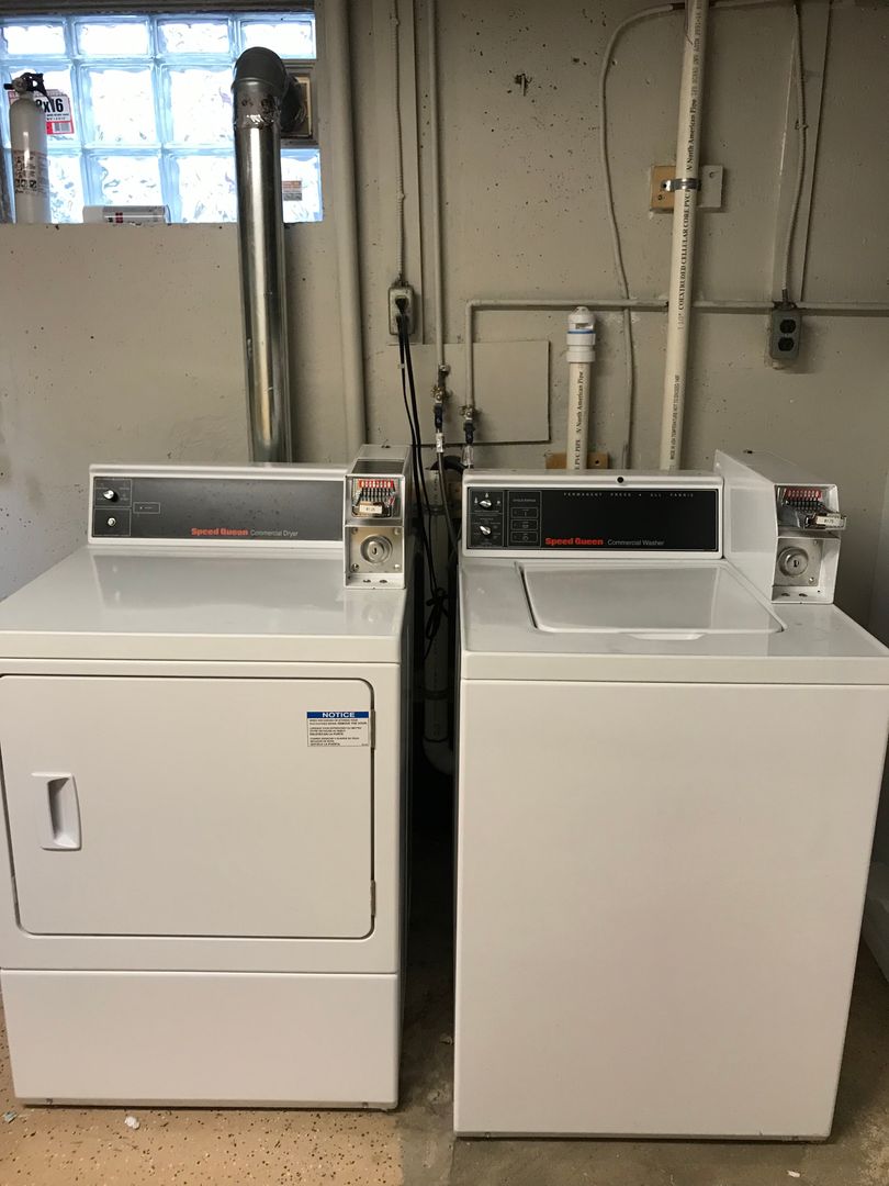 Coin-operated laundry room with washer and dryer
